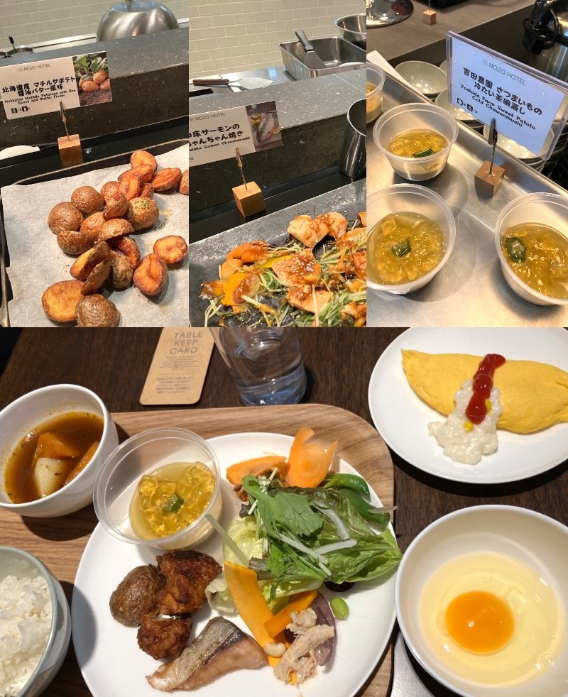 こちらの朝食ビュフェは、北海道のおいしいものオンパレード!この日は、ほくっほくっでおいしい北海道産マチルダポテトの醤油バター風味、ザンギやスープカレー、知床サーモンのちゃんちゃん焼き(味噌焼き)、提携農園のさつまいもの冷たい茶碗むし、そして、提携農場からの卵。お米もローカルのゆめぴりかで粒が立っていておいしい。つい食べ過ぎてしまうので、朝食前のフィットネス&お風呂でちょうどいい感じです。