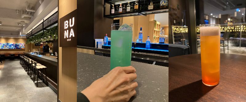 都会でバーの扉をひとりで開けて入っていくのは、ちょっと勇気が入りそう。ここは、リゾートホテルのオープンなカウンターなので、ひとりでカクテルなども頼みやすくていい感じ。スタッフに「地元のお酒(ジン)を使って」とオーダーしてみたり。カクテルは1200円から。