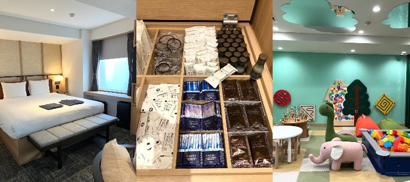 前回は。美磨きにおすすめの持参のモイストオイルをご紹介しましたが、「ノゾホテル」には洗顔料・ローション・乳液など一通りのアメニティは揃ってもいます。また78室で部屋タイプは9通りもあって2段ベッドのある部屋も。キッズルームがすごく可愛くて、大人の一緒に遊びたいぐらい。