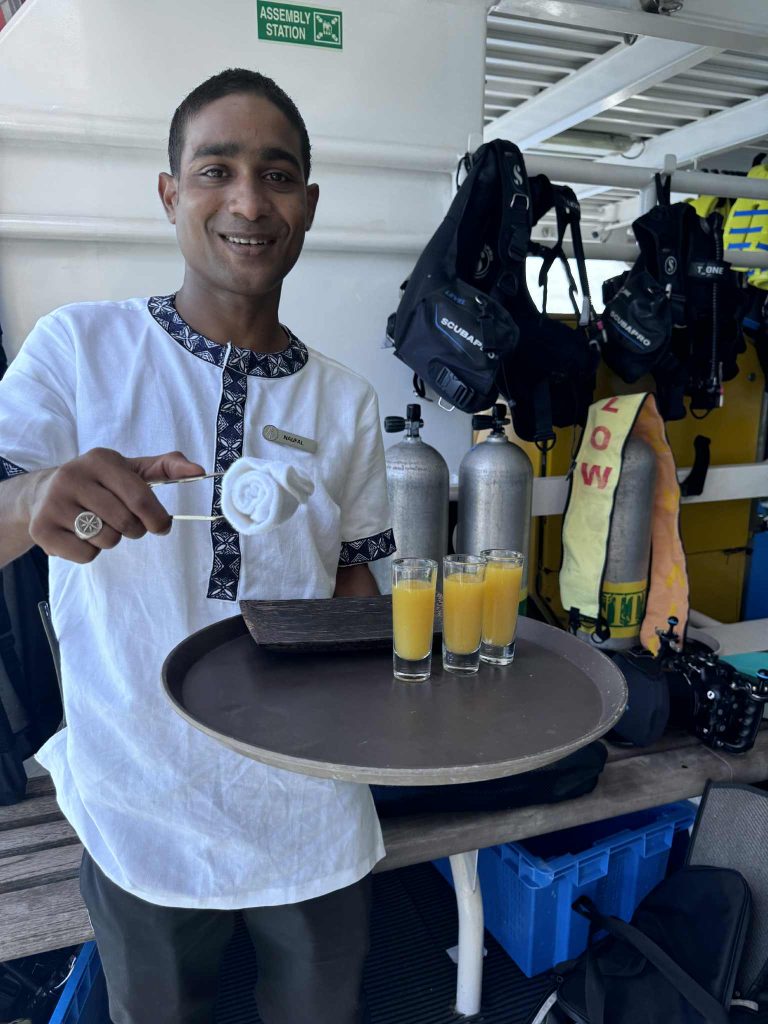 多くの食材や飲料を輸入に頼るパラオですが、エクスプローラー号ではパラオの食材をうまく取り入れた、とてもレベルの高いお料理が提供され、大満足でした。船上での宿泊費・三食の美味しいお食事や飲み物(アルコール類を除く)・アクティビティの参加費やガイド料がすべて込みになっていることを考えるとむしろ割安感を感じる料金設定です。