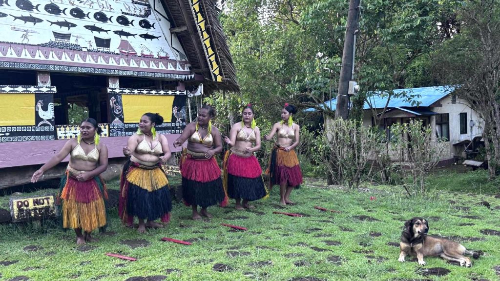 エクスプローラー号では、マリンアクティビティ以外にも様々なプログラムが用意されています。私は、パラオの伝統的な村を訪ね、腰蓑を纏ったパラオ女性の説明で、「バイ」と呼ばれるパラオの伝統的な建物や大海原を渡った大型木造船などを見学しました。パラオの歌とダンスの披露も。コーラスのハーモニーがとても美しく、踊りも優雅。この他にも、専門家によるバードウオッチングツアー、海洋生物学者によるパラオの海についてのセッションなど、日替わりで興味深いプログラムがあり、乗船中に時間を持て余したり飽きることはありませんでした。