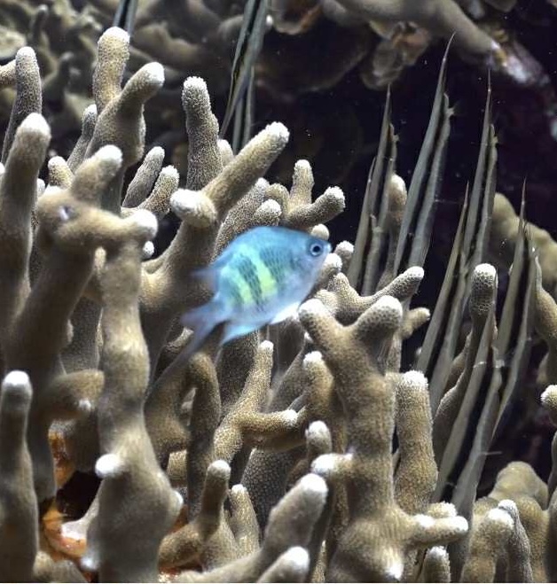 まず目に飛び込んできたのは、海底を埋め尽くすほどのサンゴ。木の枝のようなサンゴ、直径2m以上ありそうなテーブルサンゴ、球体のサンゴ…いろいろな種類のサンゴで海底の岩礁が見えないほどです。目が慣れてくると、その間を泳ぐ、色も大きさもさまざまな魚たちもよく見えてきました。“ニモ”のカクレクマノミ、チョウチョウオ、ツノダシなど名前がわかる魚もたくさん。スタッフが海底まで潜って大きなナマコを持って上がってきて触らせてくれました。意外と硬いのにびっくり。それから大きなオオシャコガイが海底で口を開けていました。スタッフが貝の縁を軽く触ると、パチっと口を閉めました。