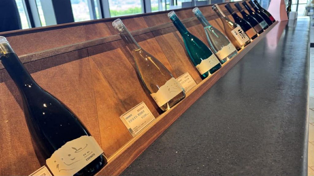 チェックアウト後は、《ESHIKOTO》でお買い物。黒龍酒造の日本酒のラインナップを有料試飲することができ、ここでしか買えない銘柄、そして宿泊者限定の銘柄も販売しています。私も前夜のお食事の際にいただいて気に入ったものを購入しました。その他にも美味しそうなお菓子が並ぶパティスリー、お蕎麦がいただける《蕎麦 山や》、ベーカリー《ハレヤ》など歓宿縁の宿泊の前後や観光の途中にも利用できる施設があります。