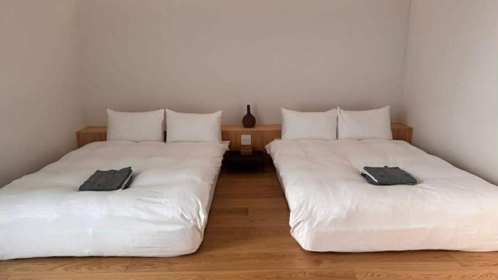 全8棟のヴィラ。まず特筆すべきは、約100平米というその広さ。どのヴィラからも九頭竜川とその向こうに広がる山並みを眺めることができます。リビング、寝室、温泉が出るお風呂…どこも広々していて、居心地が良く、九頭竜川の川音をBGMにゆったりとした時間が過ごせます。